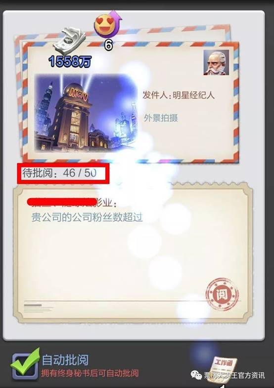 在这里,Chen教给大家一个小技巧,据猫鱼集团资深玩家雅林god研究发现(不代表官方数据),每日系统共有100条待办公务出现,当办公室升级至最高等级50级时,公务系统待批阅公务总数上限为50,也就是玩家朋友当日如果出现了期待值用不掉的情况(走心续集12连,上班繁忙没空闲),那么可以适当的用掉51次公务,剩下的49次可以放在那里,累积到第二日再去使用,那么第二天我们就可以获得总共49+100=149次处理公务的期待值了。