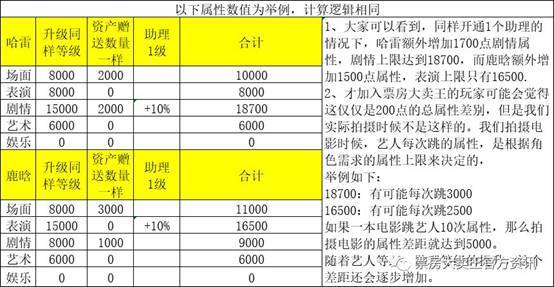 在上图里,大家可以看到,送哈雷资产会增加2个剧情,2个场面,送鹿晗资产会增加3个场面,一个剧情所有5星艺人的主属性成长,和其他属性成长都是一样的。那么提升艺人属性的方式有哪些呢?